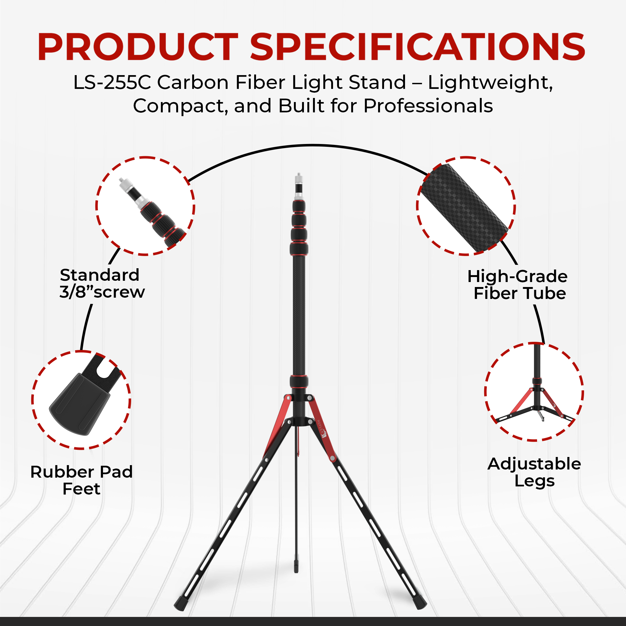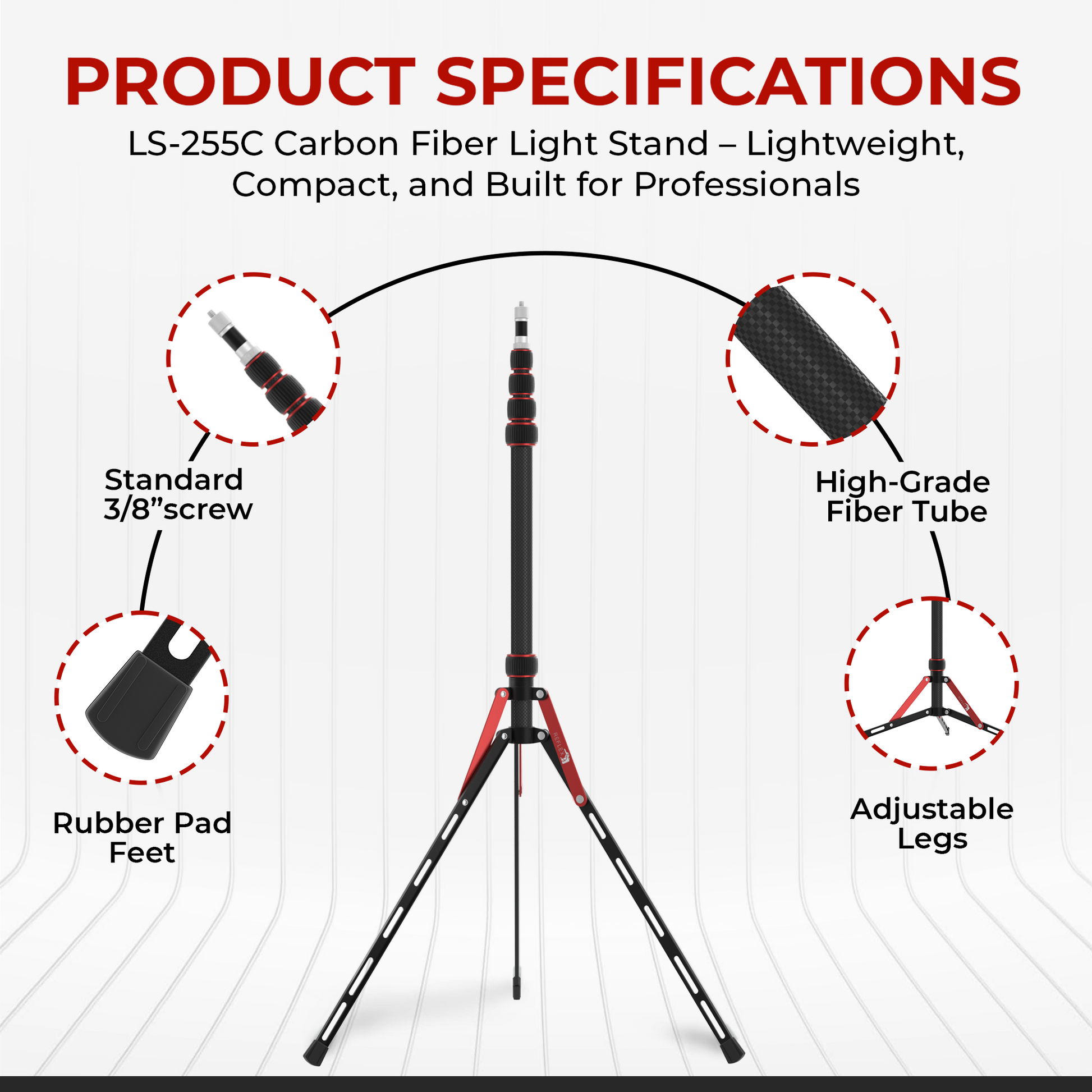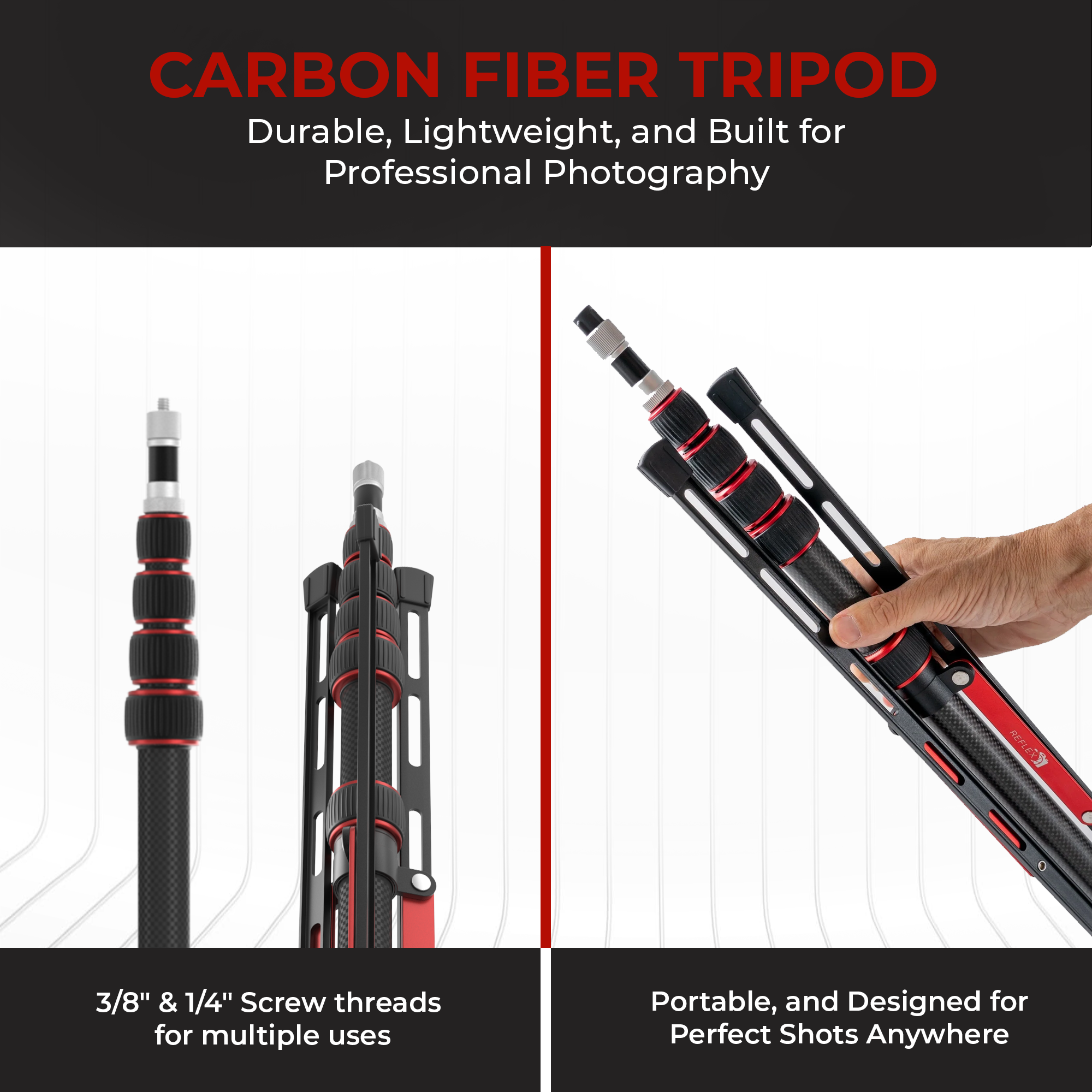 Whether you’re capturing portraits, products, or cinematic video, the REFLEX CAMERA Carbon Fiber Light Stand delivers the reliability and performance you need — without the weight. Perfect for creators who value both quality and convenience.