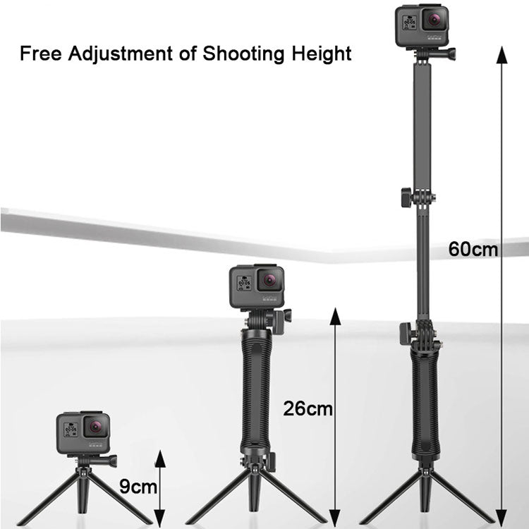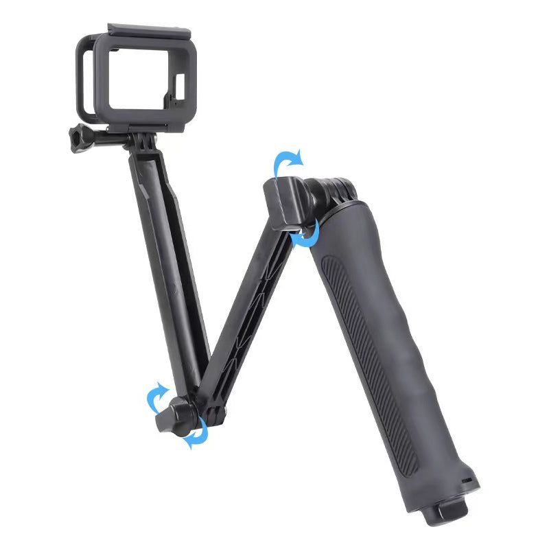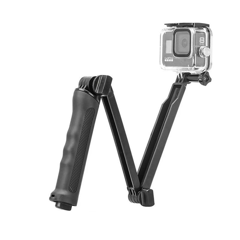 Reflex Camera 3-Way Foldable Selfie Stick Tripod for GoPro Hero 13-9, DJI Osmo Action – Extendable Pole, Tripod Grip, Lightweight Action Camera Mount for Travel, Vlogging & Sports Shooting